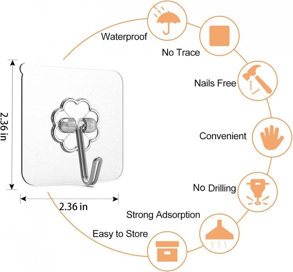 Home > Products > classroom supplies > Adhesive Hooks, Sticky Hooks, Transparent Reusable Removable Adhesive Hooks for Hanging, Wall Hooks for Hanging Can be Use for Kitchen Bathroom Shower Outdoor Home Improvement