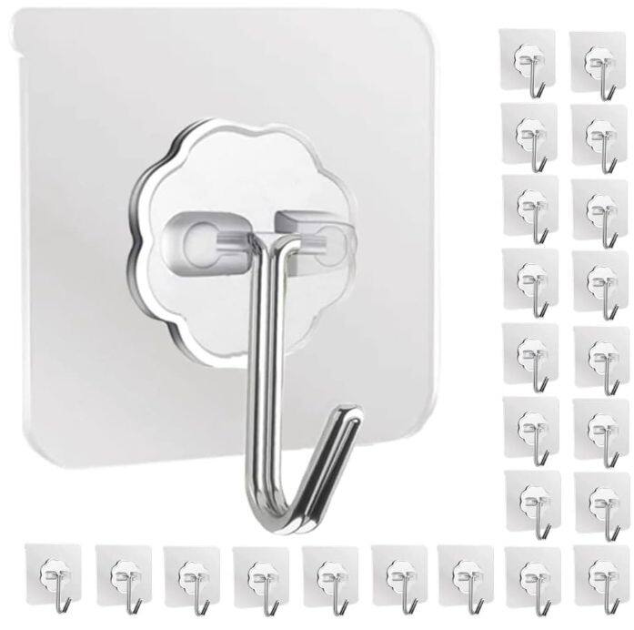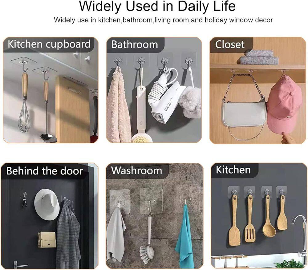 Adhesive Hooks, Sticky Hooks, Transparent Reusable Removable Adhesive Hooks for Hanging, Wall Hooks for Hanging Can be Use for Kitchen Bathroom Shower Outdoor Home Improvement