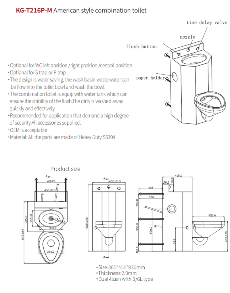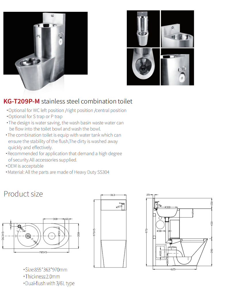 Features: Integrated design, reduces space, saves water, thickened stainless steel material, sturdy and anti smashing,