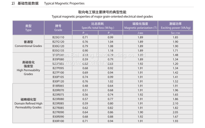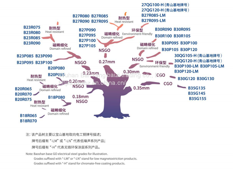 6. Environmental protection and low noise oriented electrical steel B27R085-Lb27R095-Lb30P100-Lb30P105-Lb30P120-Lm27QG100-H30QG105-H.