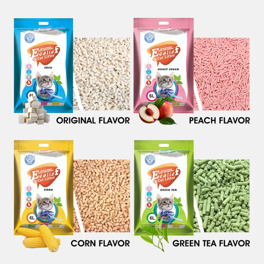 OEM ODM Bulk 6l Lavender Peach Scented Premium Natural Plant Tofu Cat Litter Clumping Dust Free Flushable Tofu Cat Litter Sand