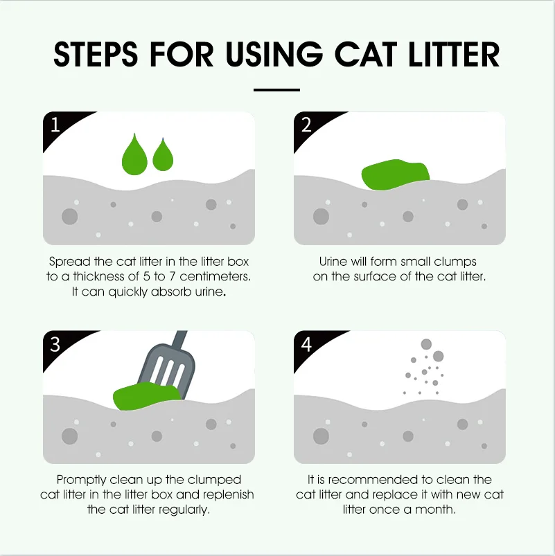 5.Not any harm to cat and people, green environment and hypo-allergenic cat litter.