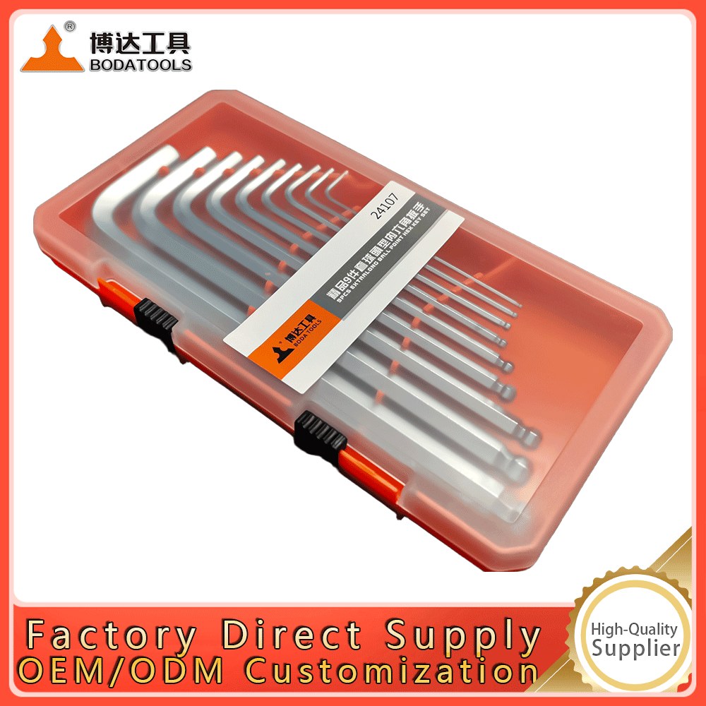 Home > Products > Fastening tools > Industrial-grade Ball-end Hexagonal Wrench Set 1.5-10mm Extended L-shaped 9-piece Set of Screw Wrenches for Wholesale and Customization