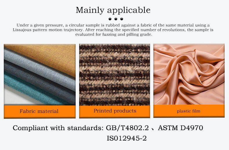 Standard | GB / T4802.2, ASTM D4970, ISO12945-2 and other pilling degree test; GB / T13775, ASTM D4966, ISO12947 and other fabric abrasion tests. |