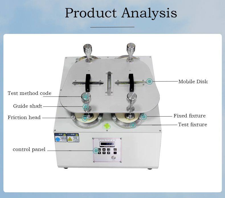 This Martindale tester adopts advanced sensing technology and precise mechanical structure, which can accurately measure various parameters of the material in the friction process, such as friction force, friction number, wear degree, etc.. Through the high-precision measurement system, it ensures the accuracy and reliability of the test results and provides solid data support for material performance evaluation.