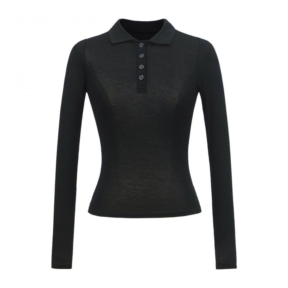 Hot Girl American T-shirt 2025 Pure Lust Style Slim Solid Colour POLO Collar Micro Transparent Shoulder Top