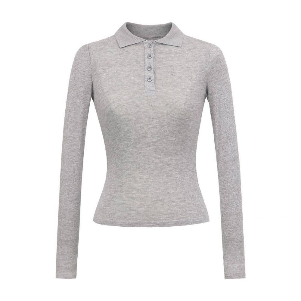 Hot girl American T-shirt 2025 pure lust style slim solid colour POLO collar micro transparent shoulder top