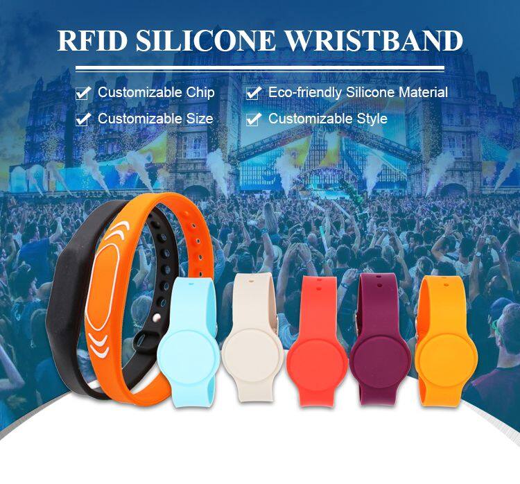 Customized Logo 13.56mhz Passive Eco Silicone Rewritable RFID Key Bracelet Concert Tickets RFID Wristband