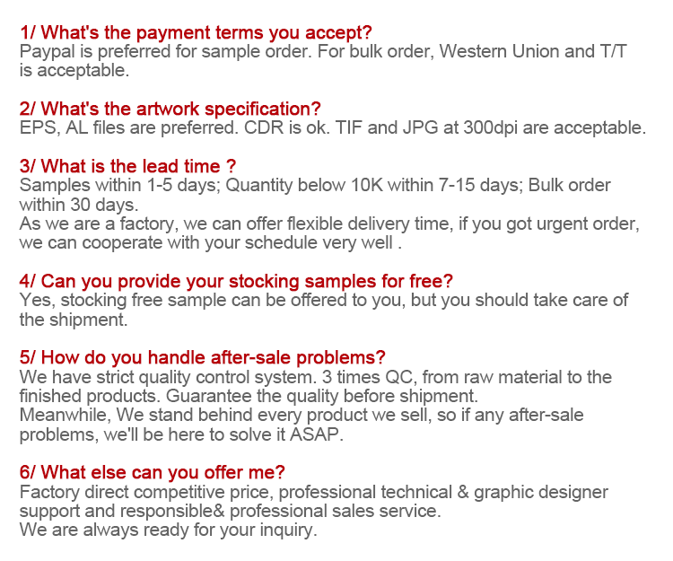 | Craft | Logo print, number engrave etc. | Color | Red, pink, yellow, green, blue etc. | |