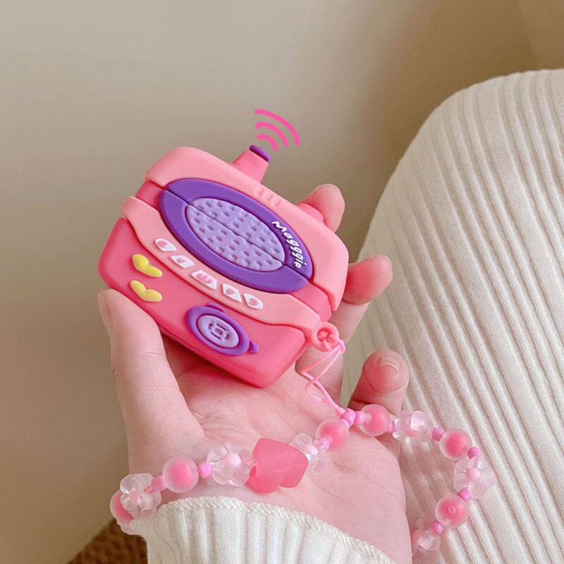 2024 Pink Walkie Talkie Design Earphone Case for Airpods Pro 1 2 3 Cartoon Cute Silicone Protective Cover With Plush Pendant