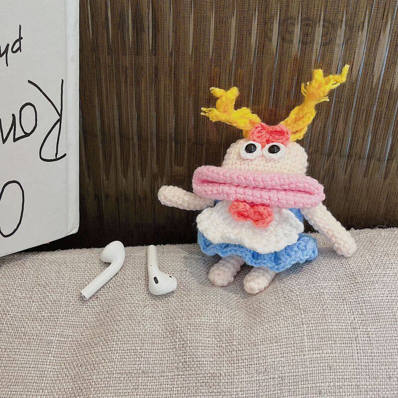Earphone Case for Apple AirPods 2 Pro Knitted Cartoon Chain Headset Charging Box Cute Soft Cover for Air Pods 3