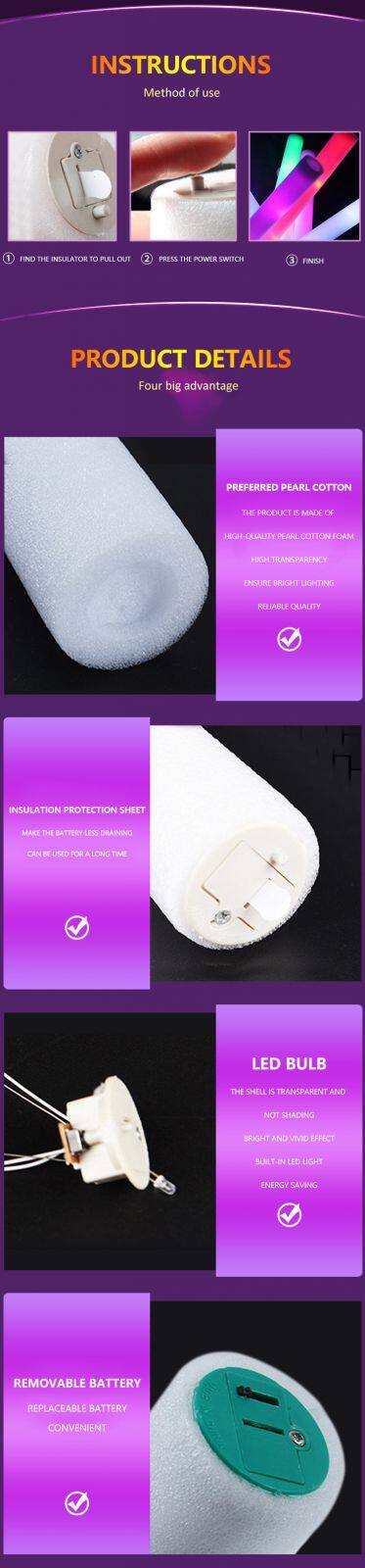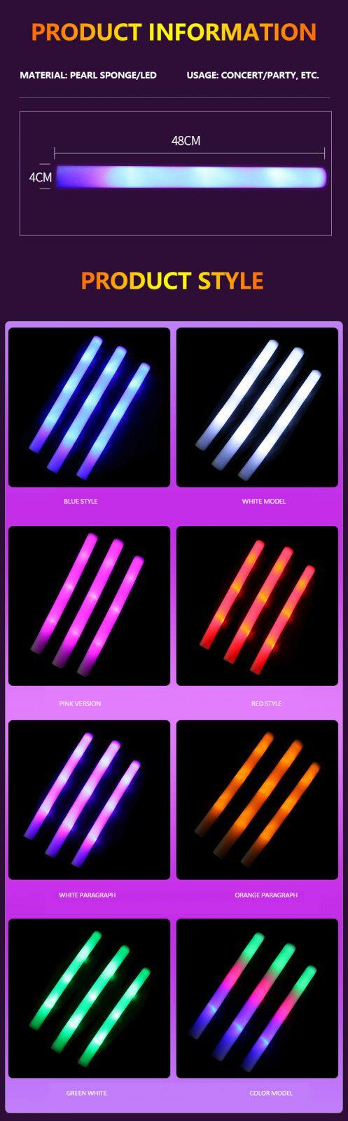 Cheer Tube Rgb Light Party Dj Night Club Concert Event Decoration Toy 48cm Glow Sticks Bulk Colorful Led Foam Stick