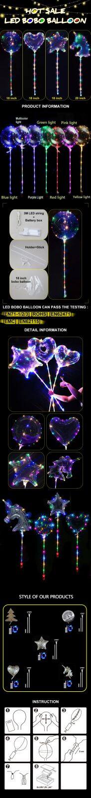 Home > Products > Other > Transparent Glow in the Dark Luftballon Bobo Balloons Clear Pvc Led Ballon Wide Mouth With Stick and Handle Globos Balloons