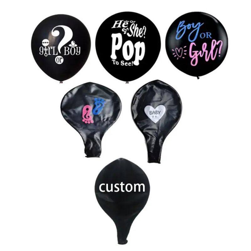 Hot 36inch Latex Black Balloon Gold Blue Pink Confetti Baby Boy Girl Balloon White Custom Gender Reveal Balloons