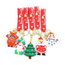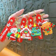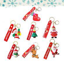 Wholesale 3D Pvc Christmas Claus Tree Cute Keychain Christmas Promotional Gift Metal Keyring Cartoon Elk Snowman Rubber Keychain