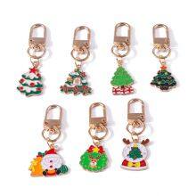 Christmas Tree Keychain Cute Santa Claus Elk Snowman Metal Key Chains Key Rings Cartoon Doll Pendant Decor Xmas Enamel Keychain