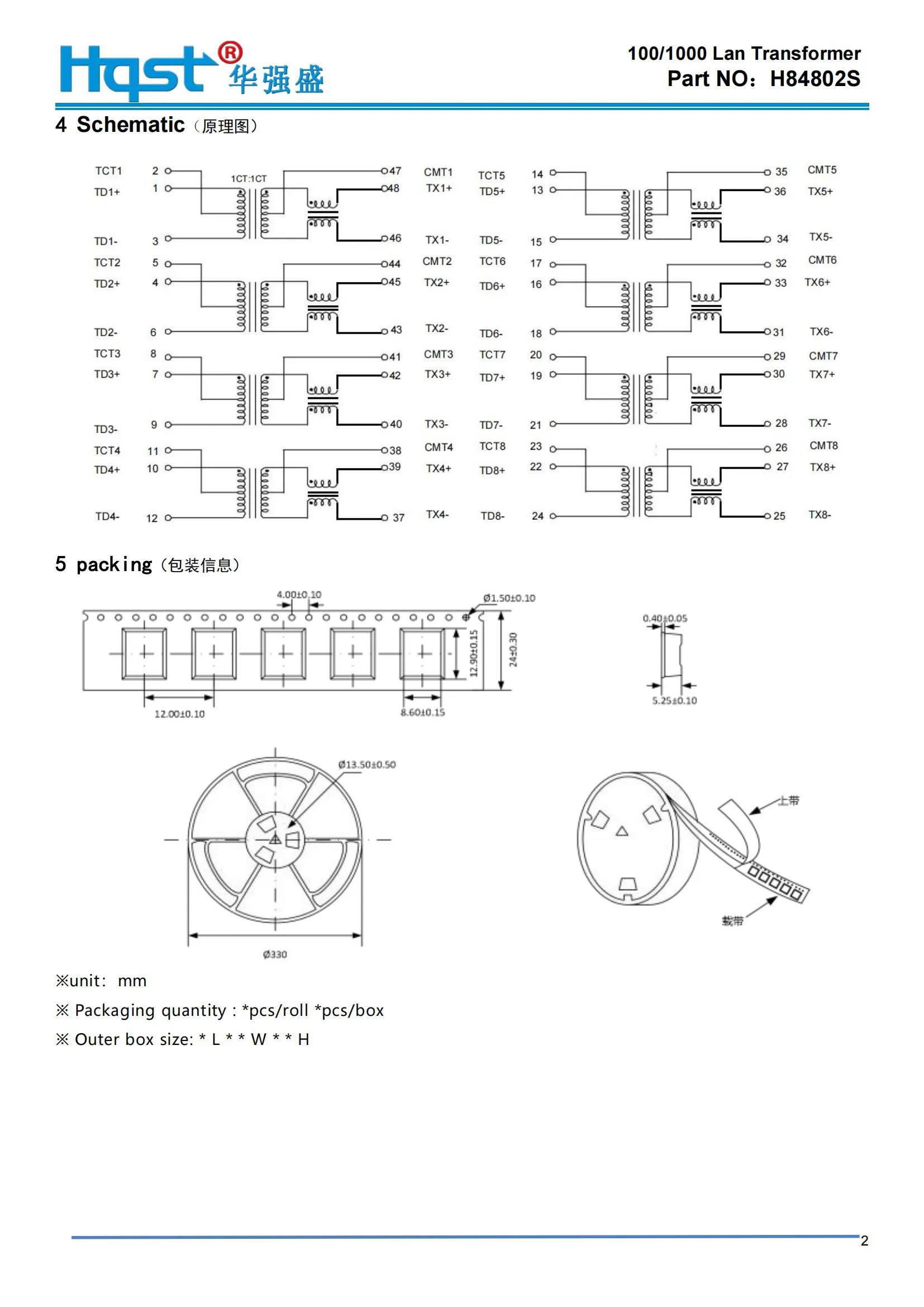 H84802S Dual Port SMD SOP-48 Pin Gigabit Ethernet Isolation Filter/Network Transformer 10/100/1000Mbps POE+ IEEE 802.3 for Route