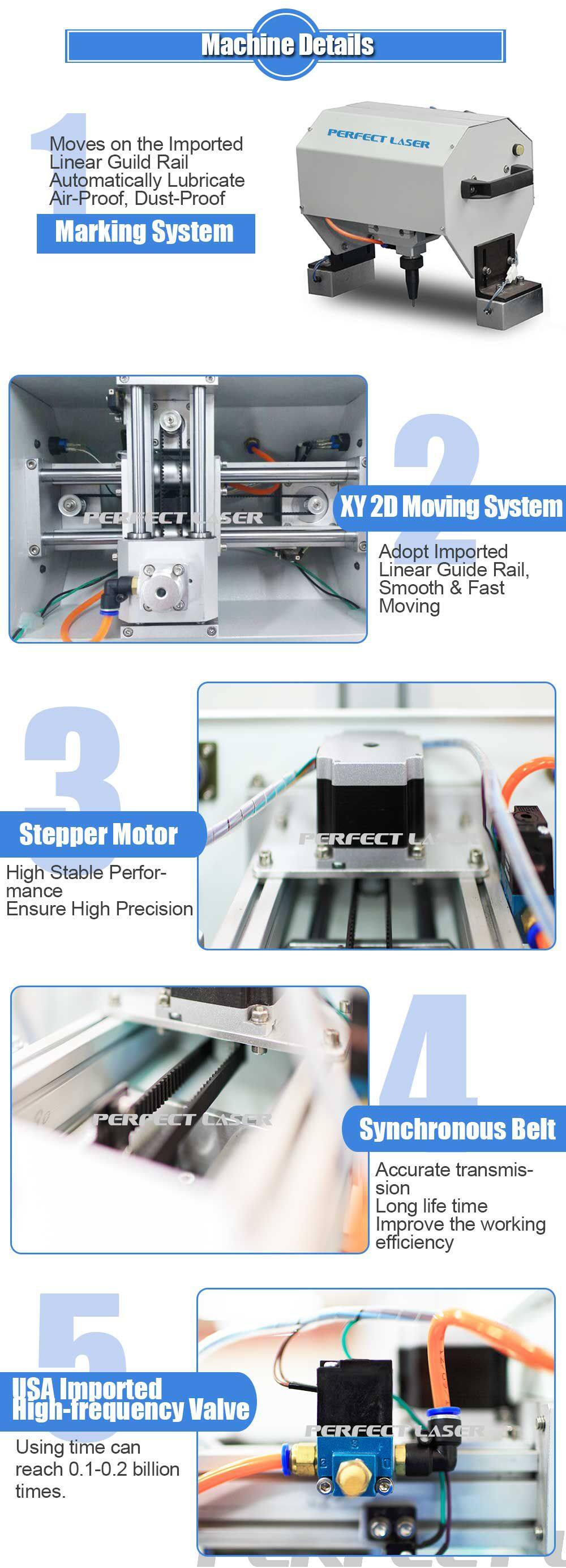 1. The dot peen marking machine enables flat surface marking of the metal and hard plastic work piece.