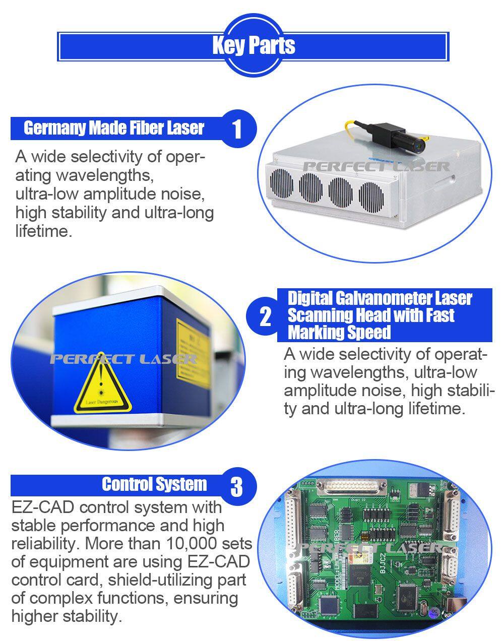 Perfect Laser's Fiber Laser Marking Machine adopts international most advanced technology and the laser source is fiber with Germany IPG technology, lifetime can reach 100, 000 hours, 8-10 years without any consumables and maintenance. The diode coupling with fiber to process pump, the pump light will course the particles reverse which can emit high quality laser beam. This is the best choice for the customers who have special requirements to the smallest & finest laser beam and character.