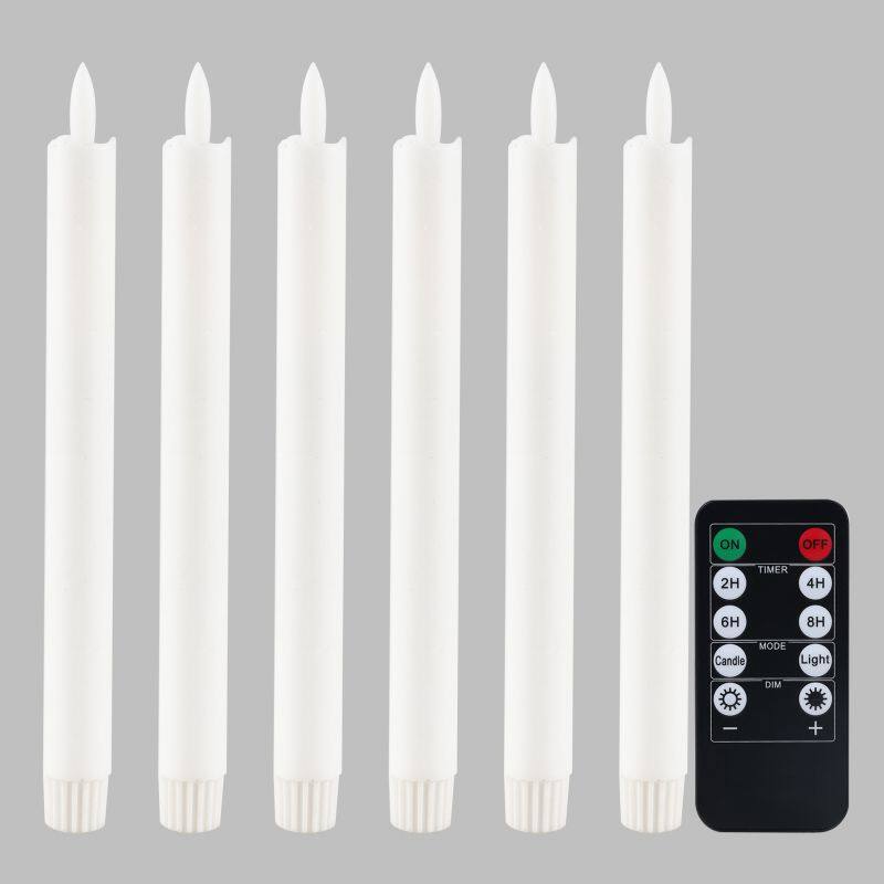 High Quality 6 Pieces 3D Moving Wick Flickering Flameless Ivory Taper Led Candles With Remote Control