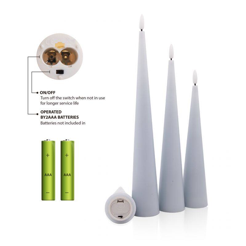 Real Wax 20 24.5 29 33 Cm Conical Shape 3D Wick Cone Candles Led Remote Control Battery Led Candle