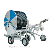 It is an irrigation equipment with its 1.6Mpa pressure PE pipe winded around the winch. It uses irrigation pressure water to drive water turbine which drives winch to rotate through the transmission and the winch pulls sprinkler cart to achieve automatic travelling and spray.