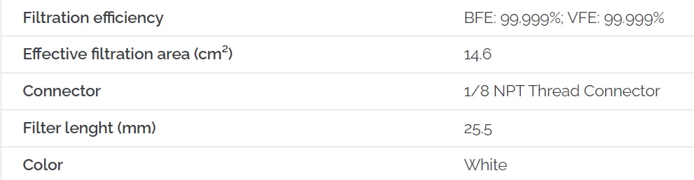 Filtration efficiency: BFE 99.999% * VFE 99.9999% *