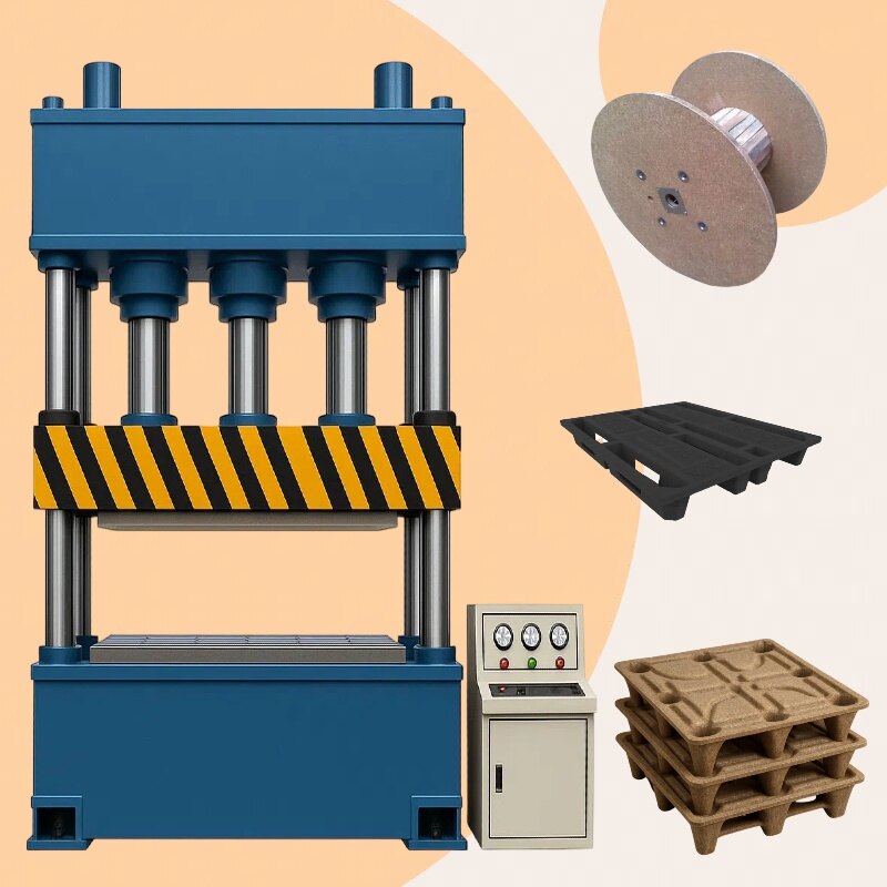 The wooden pallet molding machine is a special equipment for the efficient production of wooden pallets. It mainly uses the molding technology to mix wood materials such as sawdust, wood fiber, shavings, etc. with environmentally friendly adhesives, and then presses them under high pressure and high temperature to form them. This equipment is widely used in logistics, warehousing, packaging and other industries. It can replace traditional solid wood pallets and has the advantages of low cost, high strength and environmental protection.Compared with traditional wooden pallets, molded wooden pallets adopt a high temperature and high pressure one-time molding process, which has the advantages of uniform structure, strong load-bearing capacity, and not easy to crack and deform. Its surface is smooth and burr-free, with better moisture and corrosion resistance, and no need for nail reinforcement to avoid the risk of loosening. At the same time, standardized production is more suitable for automated warehousing and handling, and the overall cost is lower.