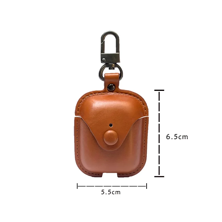 Leather Snap Earphone Case for AirPods With Keychain Vintage Cover for Apple AirPod 1/2 3 Pro Case
