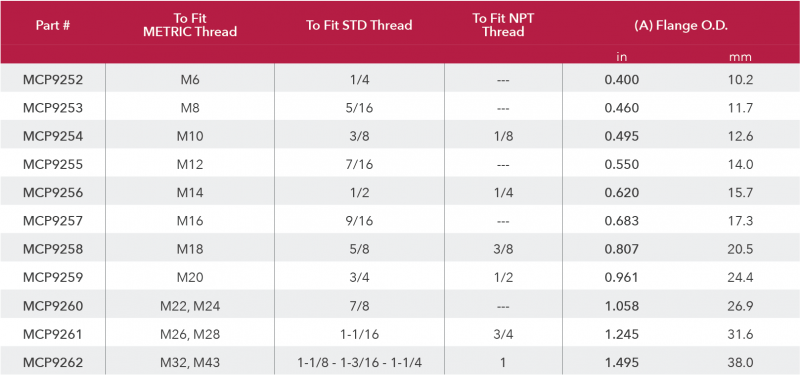 MOCAP round vinyl plastic plugs are available in sizes to fit 1/4" through 1-1/4" standard threaded holes, M6 through M43 metric openings and 1/8 through 1 NPT openings.