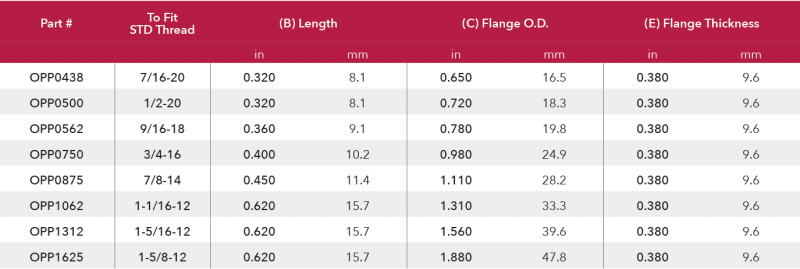 Our OPP Series Threaded Plugs are molded in Red polypropylene plastic and sized to fit Straight Thread O-Ring Ports from 7/16-20 thru 1-5/8-12.