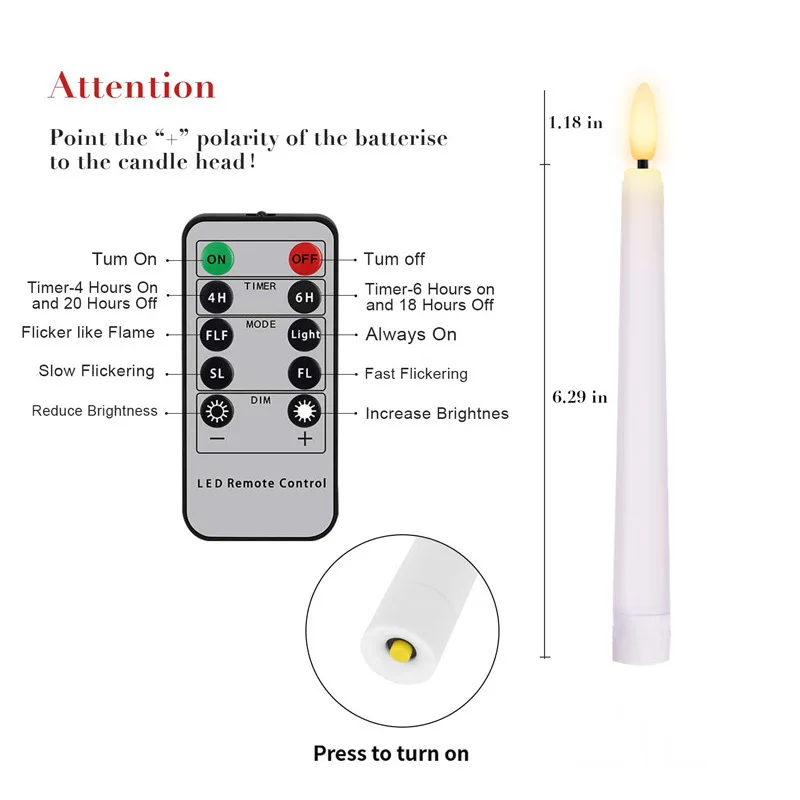 AAA Battery Operated Flameless LED Taper Candles Flickering Remote Taper Wedding Led Taper Candle