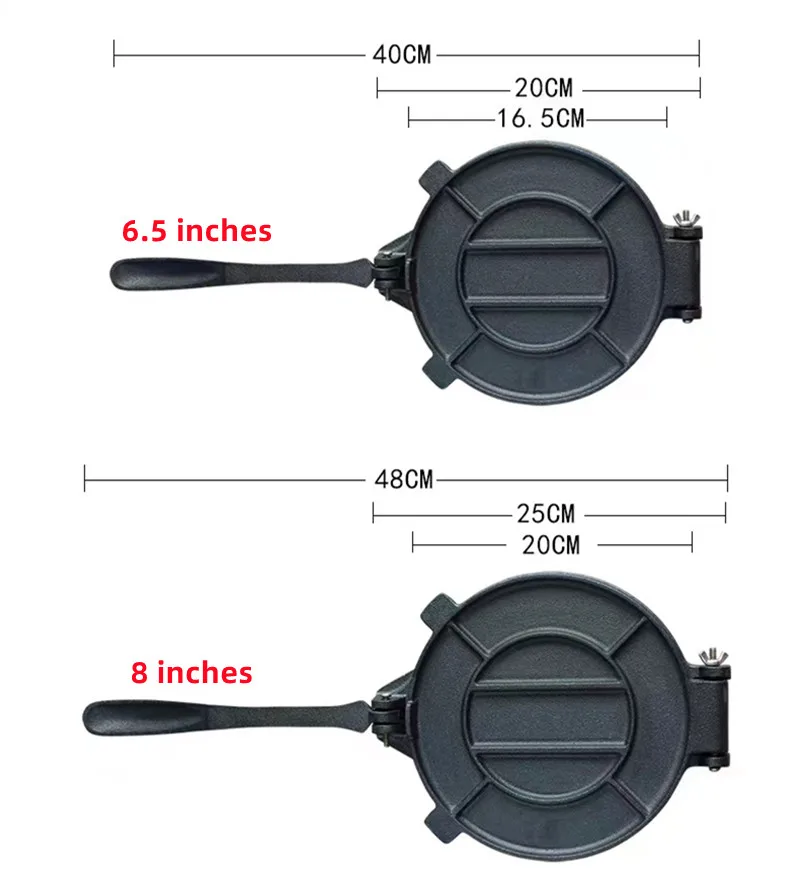 Hot Sale Kitchen Cookware Pre-seasoned Dough Presser 16/20/25cm Black Round Cast Iron Flour Corn Tortilla Press With Fold Handle