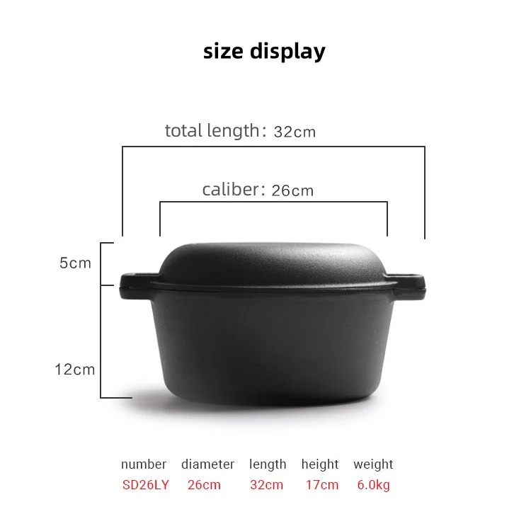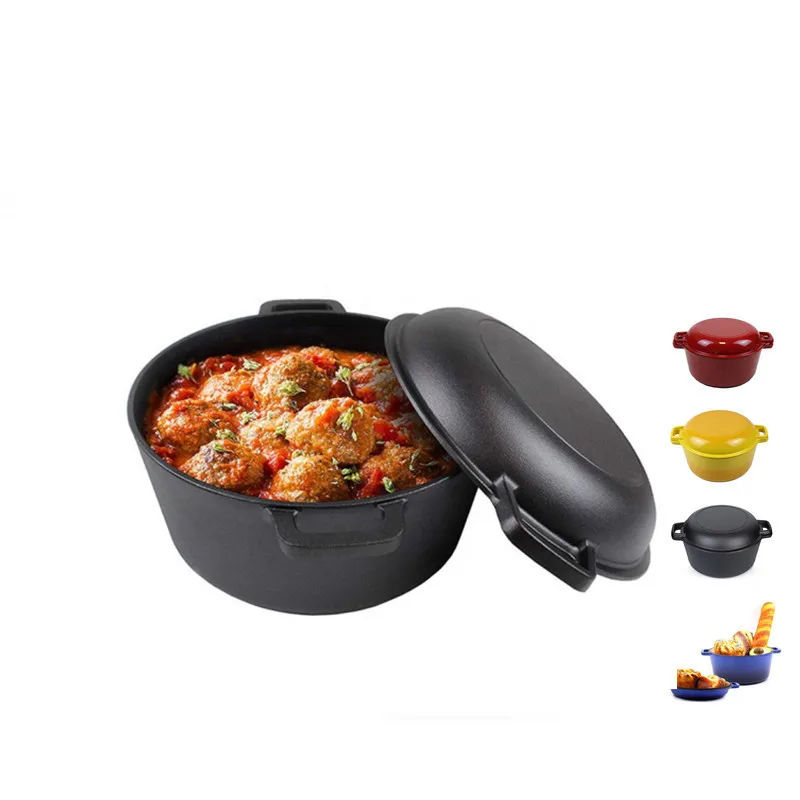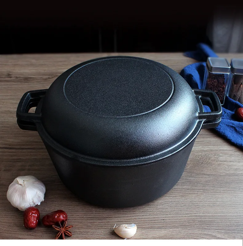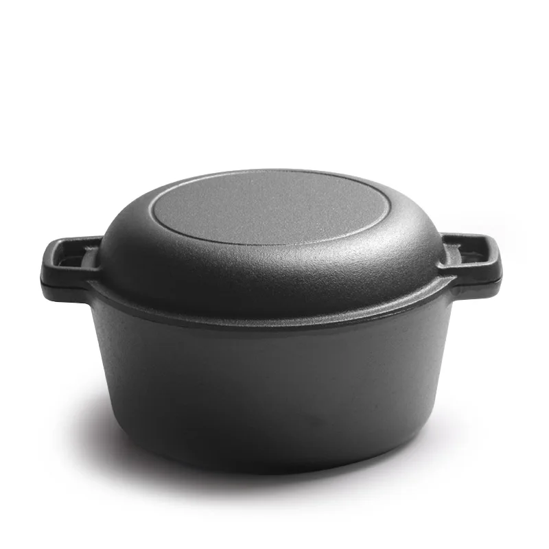 Wholesale Multifunctional Combo Cookware Pre-seasoned Cast Iron Double Pot Dutch Oven 2 in 1 With Skillet Lid