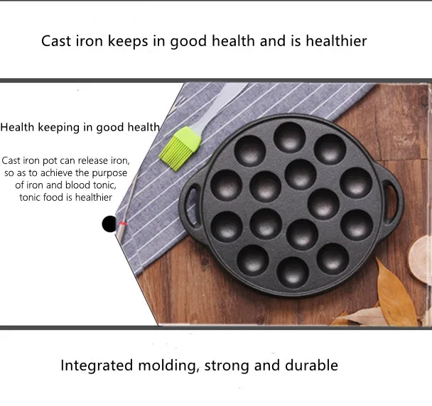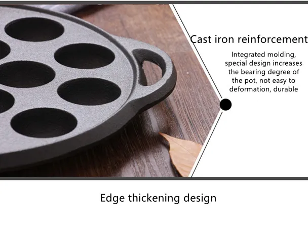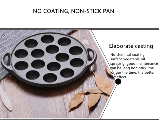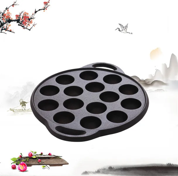 Wholesale Cast Iron Uncoated Meatballs Octopus Meatballs Pan 15 Hole Uncoated Non-stick Barbecue Machine Thickened Frying Pan