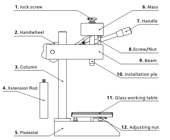The upper end of the frame is equipped with special fixed load weights,Accurately measure the hardness of rubber.