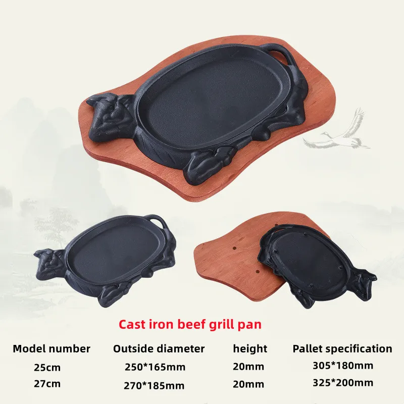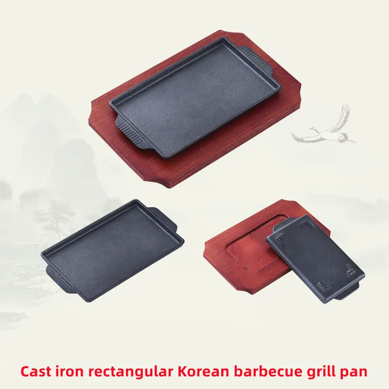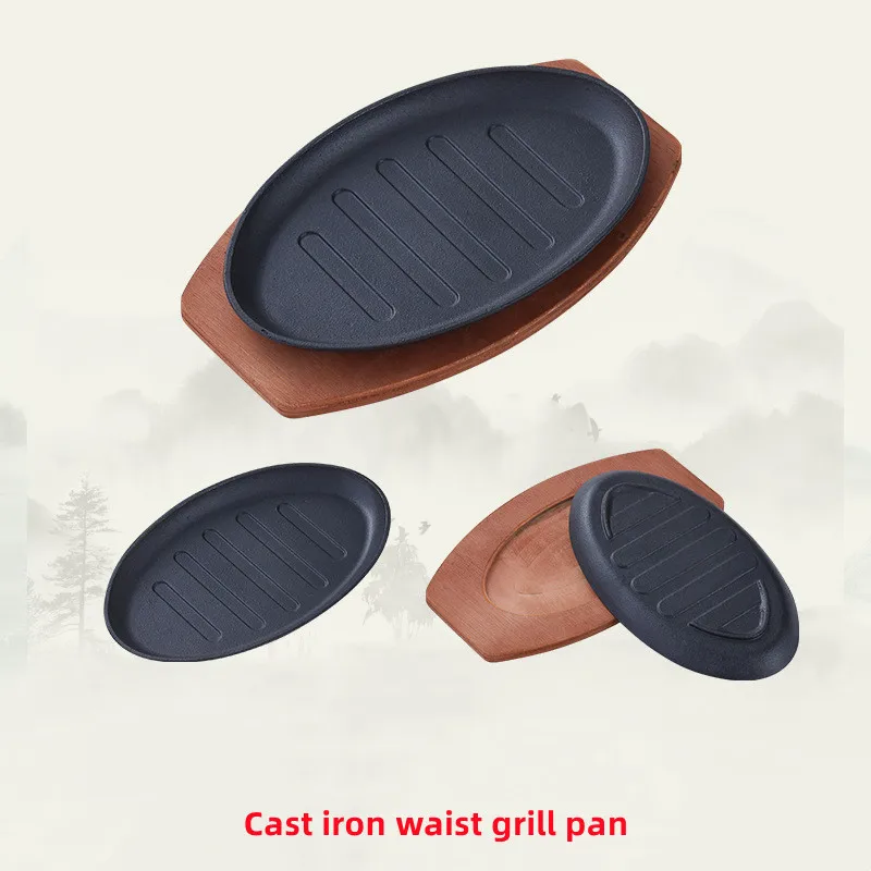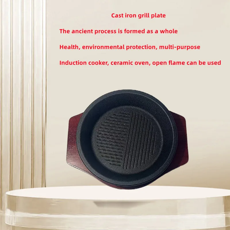 Korean Barbecue Sizzling Hot Plate Pre-seasoned Nonstick Cookware Cast Iron Fajita Steak Plate With Wooden Base Steak PlateUS$ 5.9 - 7.3MOQ: 300 Pieces