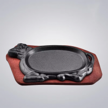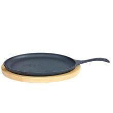 Best Selling Cookware Cast Iron Hot Sizzle Sizzling Sizzler Steak Plate With Wooden Base for Restaurant