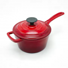 High Quality Multi-function Hot Milk Pot Cast Iron Red Enamel Soup Pot Thickened 19 cm Sauce Pot With Long Handle