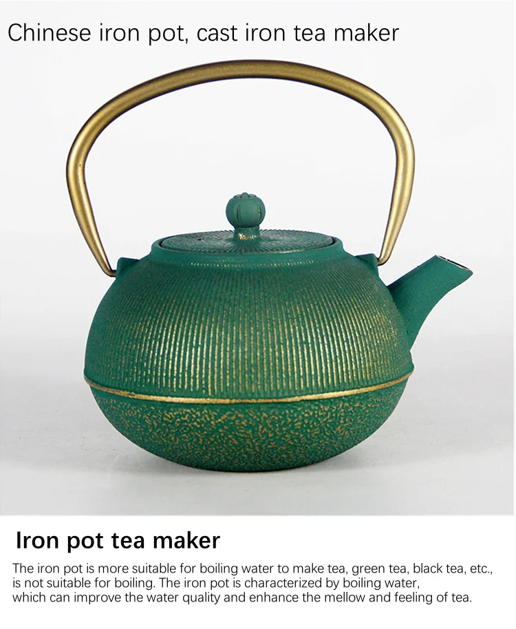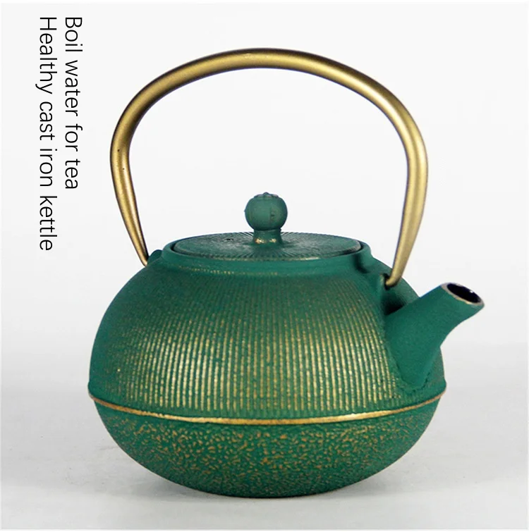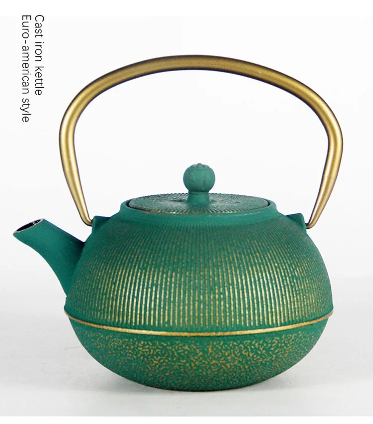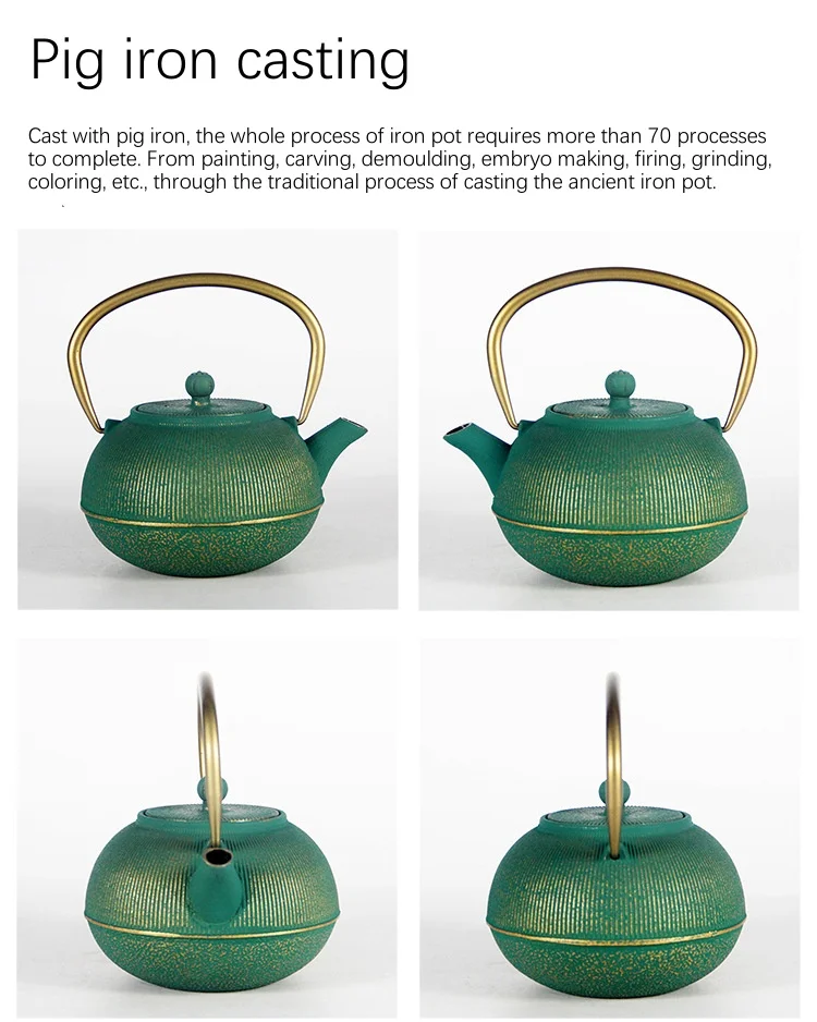 Personalized Golden Green Teaware Chinese Enamel Tea Sets Japanese Tetsubin Tea Kettle Cast Iron Teapot