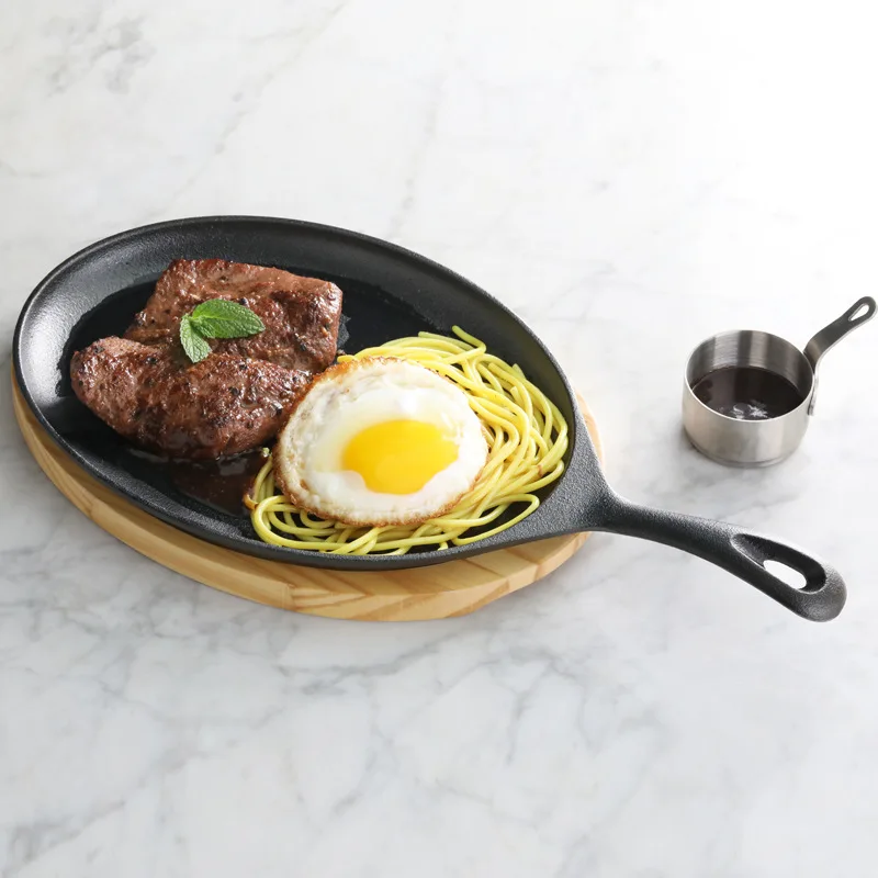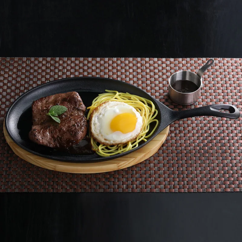 Best Selling Cookware Cast Iron Hot Sizzle Sizzling Sizzler Steak Plate With Wooden Base for RestaurantUS$ 2.7 - 3.5MOQ: 300 Pieces