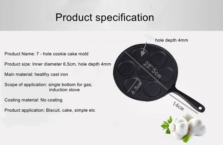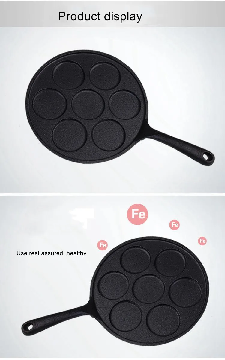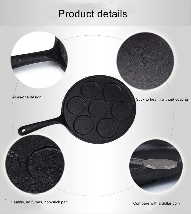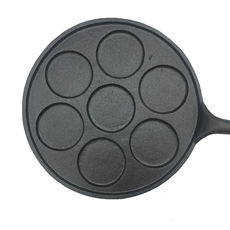 Factory Direct Cast Iron Breakfast Muffin Pans Pancake Pan Crepe Maker 7 Hole 7-Mold Egg Frying Pan Skillet Griddle