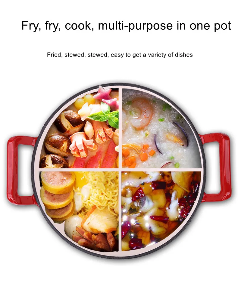 36cm Cast Iron Enamelled Wok Big Size Chinese Wok Red Double-handle Pot for Home Restaurant Chef Cooking