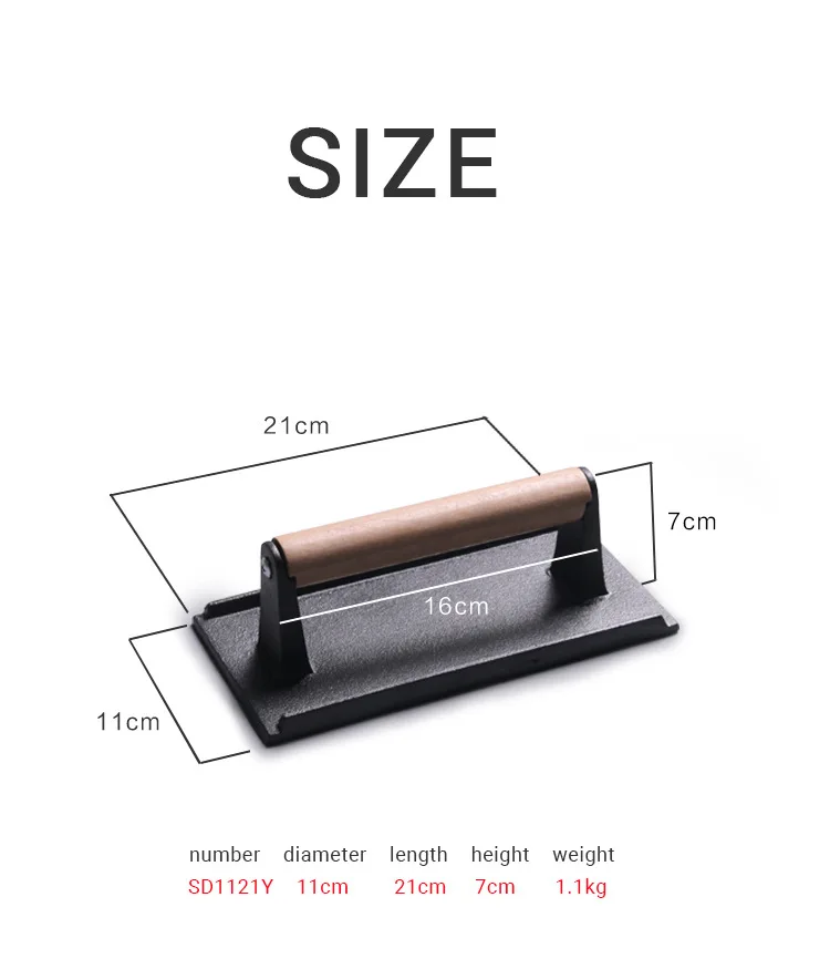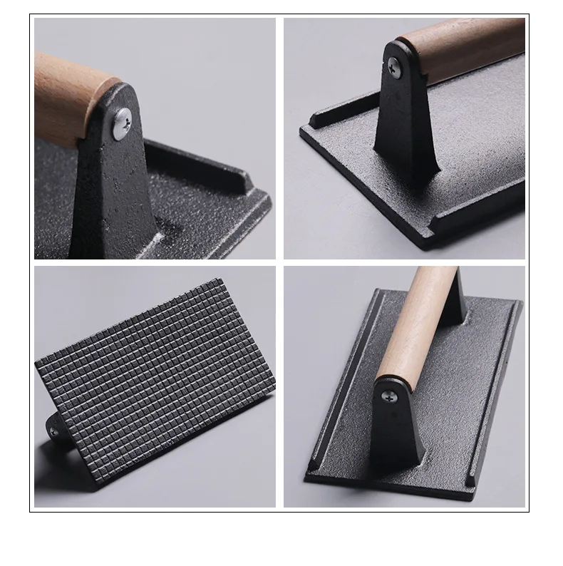 Burger Press Cast Iron Smash Bacon Press Round & Rectangle Cast Iron Grill Press With Wooden Handle for Blackstone Griddle
