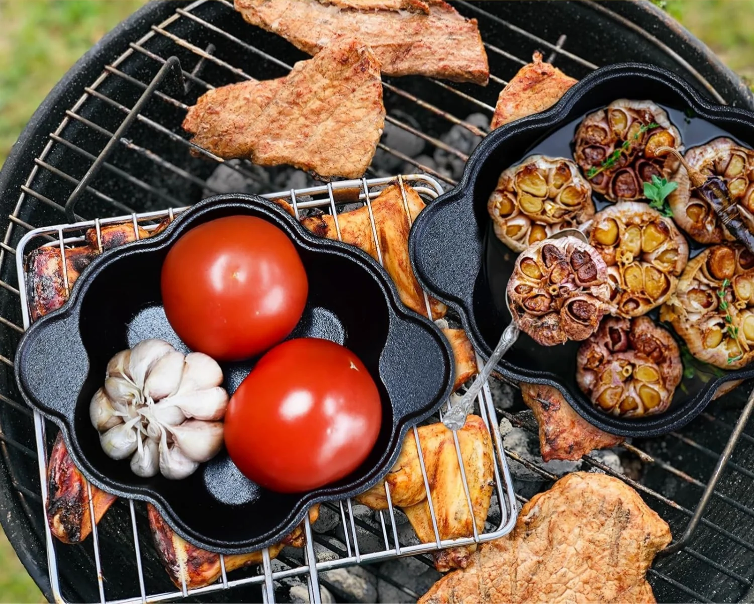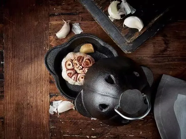 Cast Iron Garlic Roaster Thickened BBQ Roasted Garlic Orange Chestnut Pot Outdoor Barbecue Uncoated Iron Stew Pot