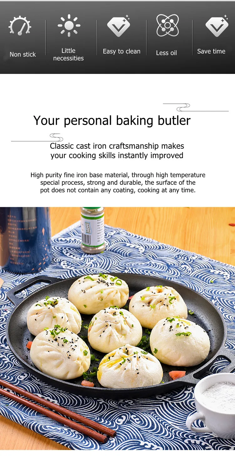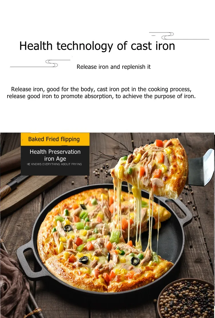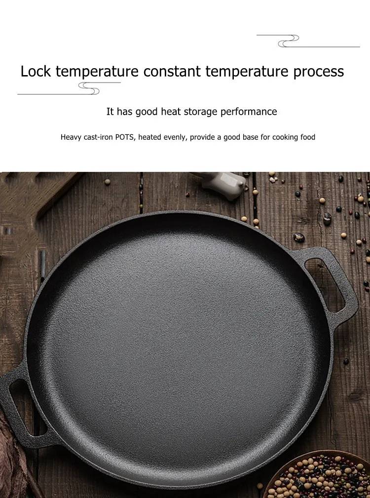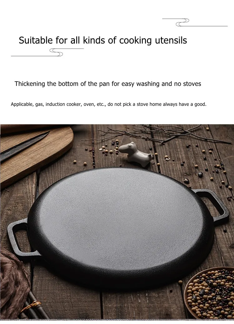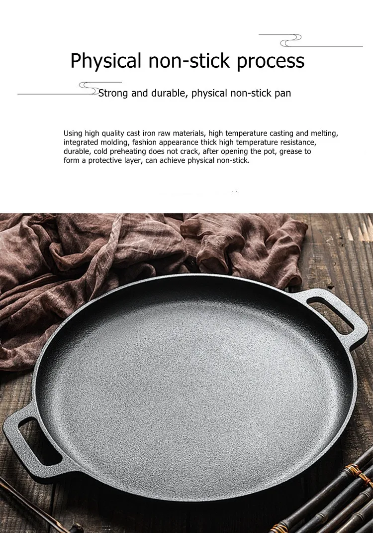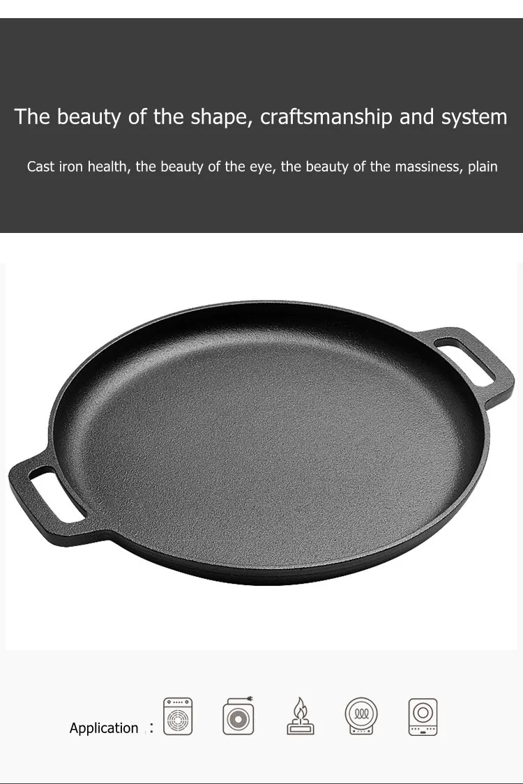 Thickened Cast Iron Griddle pancake pan uncoated hand-grabbing non-stick pan cast iron fry pan with handle Best Quality 14inch Cast Iron Pre-Seasoned Round Pizza Baking Pan With Handles