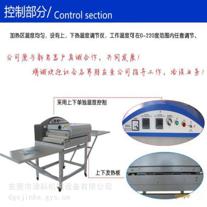 The bent arc heater is adopted, the belt and heating plate are combined more closely, the thermal efficiency is improved, and the nap and various materials difficult to be glued can be adapted.