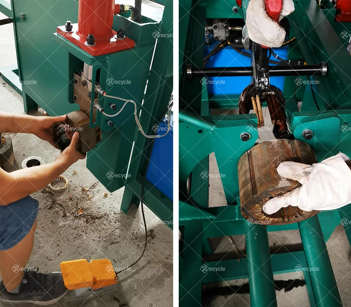 1. Firstly , put the stator in the cutter part, firstly cut the copper roll which ledge part . Then you get the head and main body.