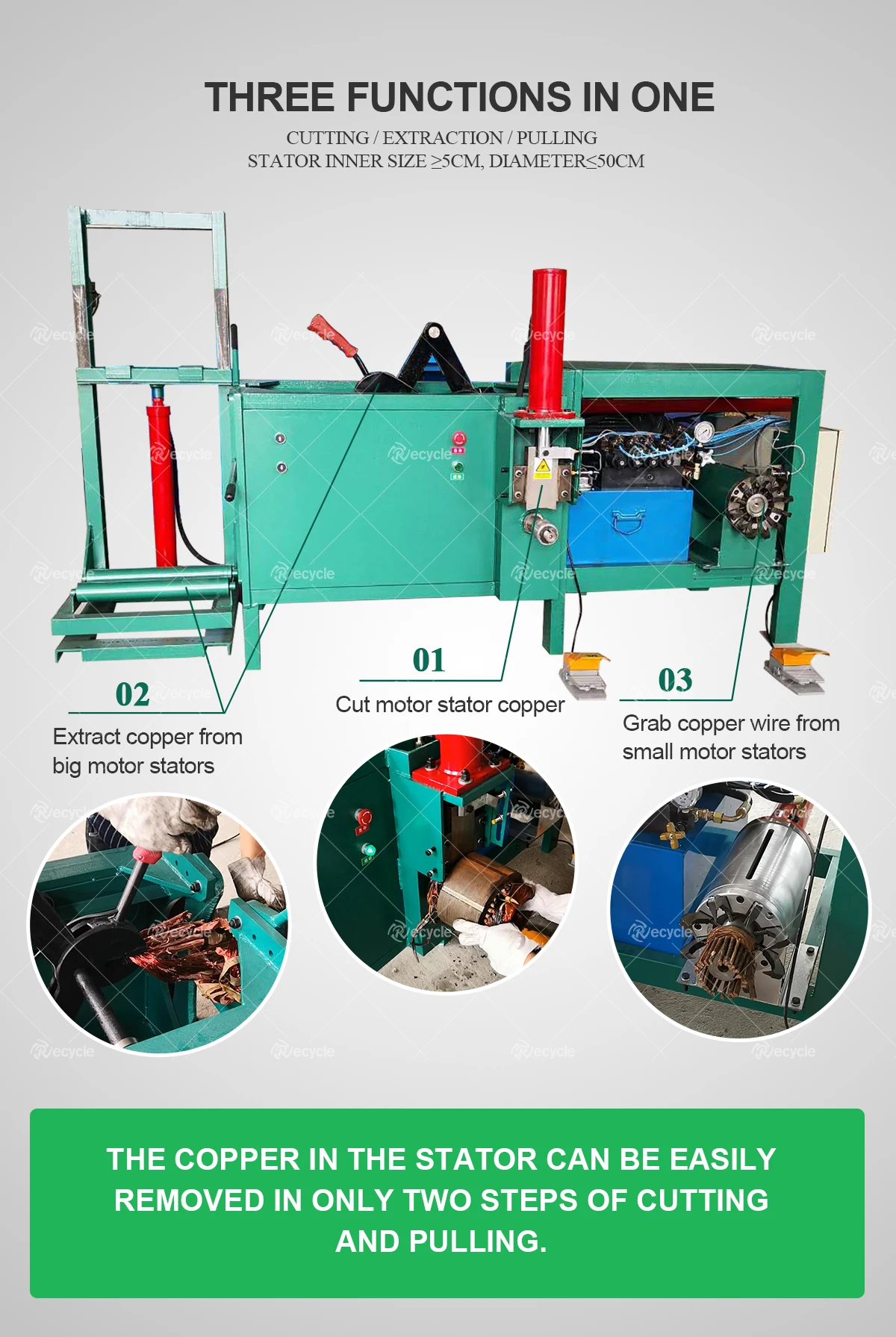 1. Scrap Motor Stator Copper Extractor Dismantling Machine is a copper recovery equipment designed for motor stator.