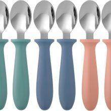 Stainless Steel Toddler Spoons Baby & Kids Utensils for Self-Feeding Plastic Handle Dishwas